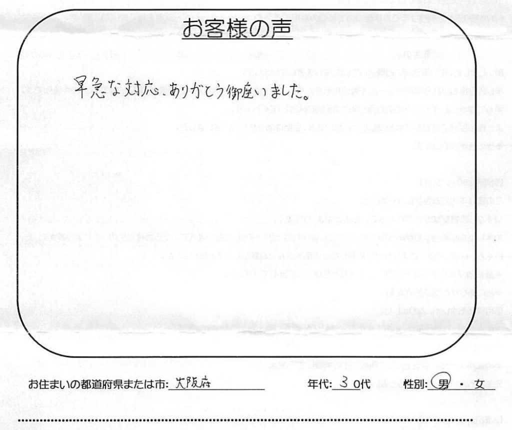 【引田法律事務所・日本保証の時効援用】口コミ・体験談「早急な対応、ありがとう御座いました」(大阪府 30代 男性)No.271